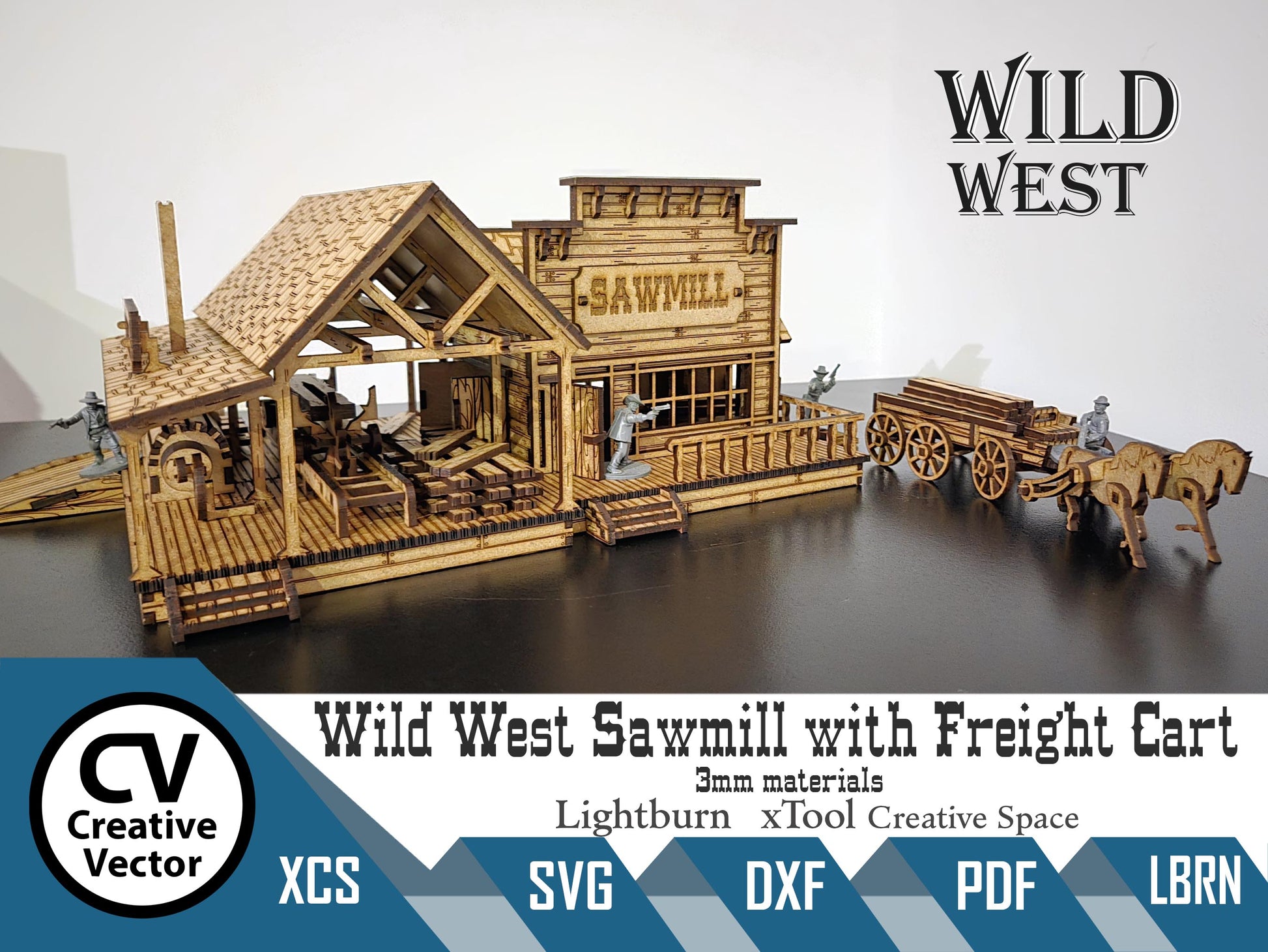 Shape pattern for laser cut Wild West Sawmill with Freight Cart for  3 mm materials.